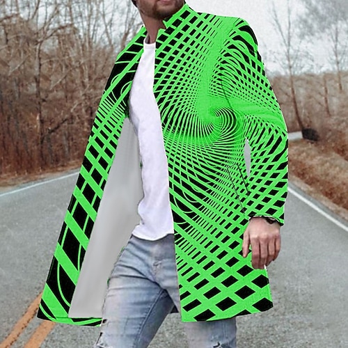 Per uomo Cappotto invernale Cappotto Per uscire Fine settimana Stampa Autunno inverno Collo ripiegabile Lungo Standard Bianco Rosso Verde Giacca