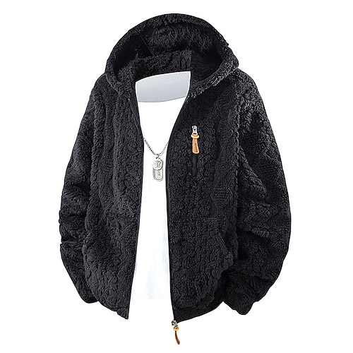 Per uomo Giacca in pile Cappotto teddy Giacca con cappuccio Giornaliero Da mare Tenere al caldo Tasche Vello Autunno inverno Liscio Di tendenza Streetwear Con cappuccio Standard Nero Blu marino Cachi