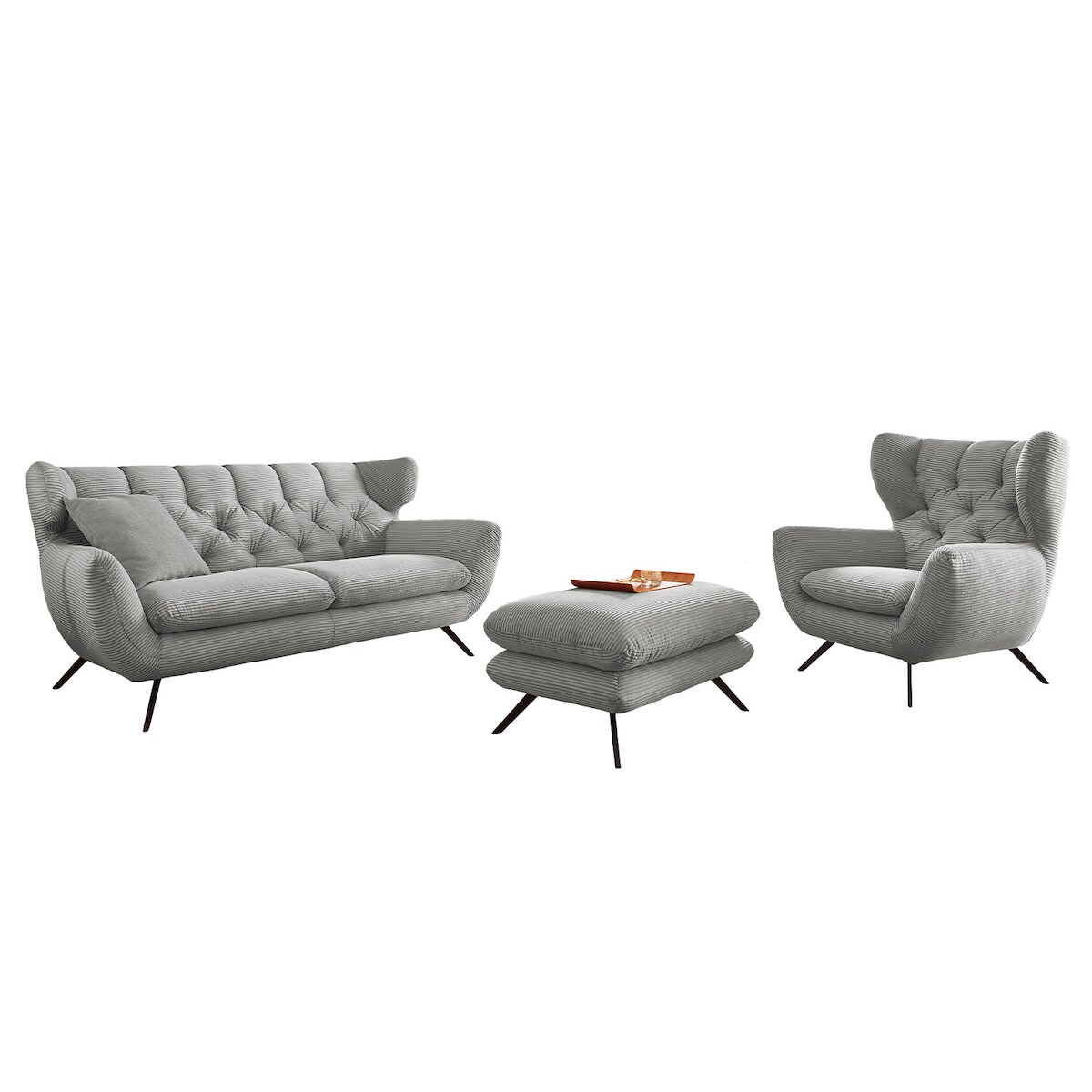 KAWOLA Sitzgruppe CHARME 3-Sitzer Sessel Hockerbank Cord hellgrau