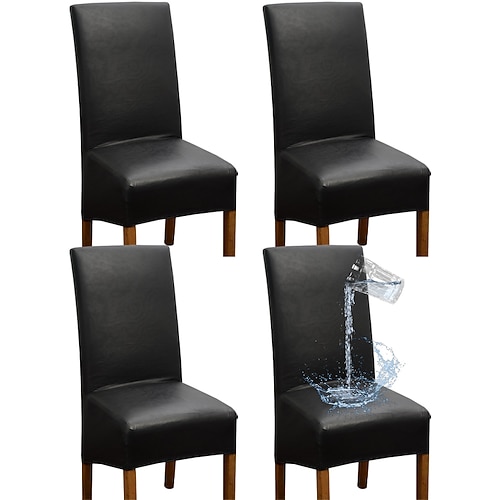 Coprisedia da pranzo 4 pezzi 100% impermeabile, coprisedia elasticizzato nero, coprisedile in similpelle con schienale alto, protezione per sedia con elastico per sala da pranzo, matrimonio