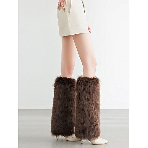 scaldamuscoli in pelliccia sintetica da donna, soffici copristivali alti fino al ginocchio, eleganti accessori per costumi da festa invernali, abiti natalizi e per le feste