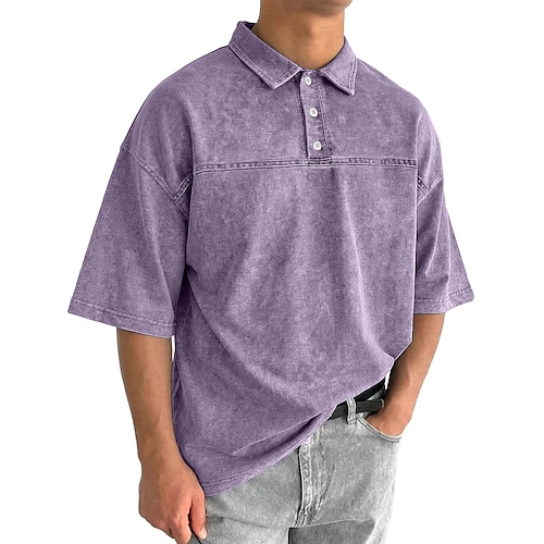 Per uomo Camicia lavata con acido Polo in Cotone Casuale Affari Colletto Polo a Coste Manica Corta Moda Essenziale Tinta unica Blocco di colori Bottoni Lavato Estate Primavera Primavera Autunno
