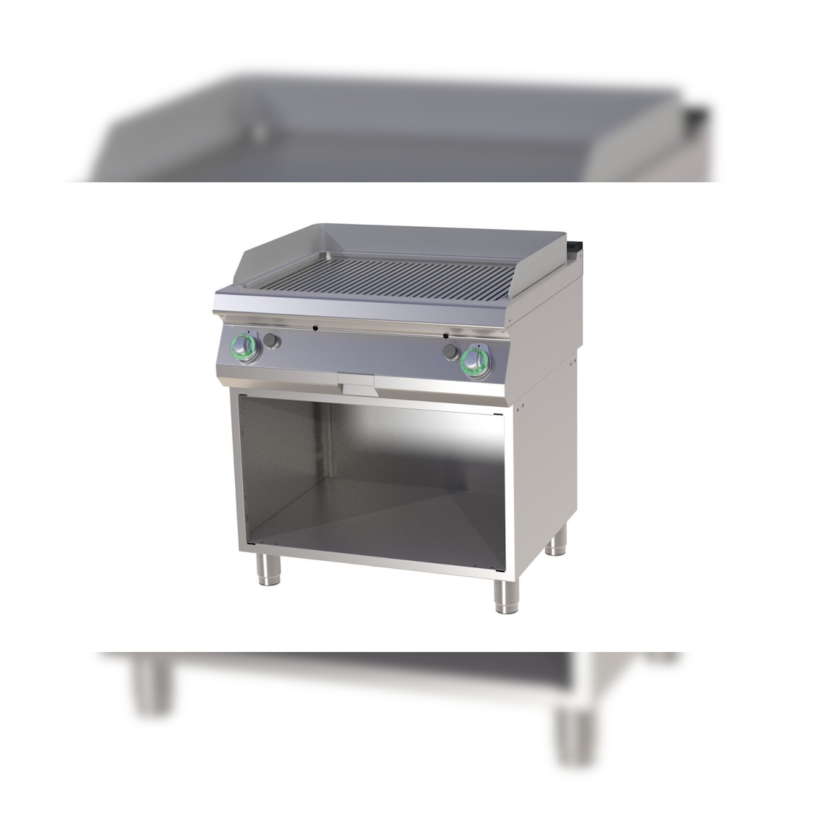 A&S polarny Gastro Gas-Griddleplatte gerillt Standgerät Unterbau Grillplatte Bratplatte 800x730x900 mm Edelstahl 14 kW