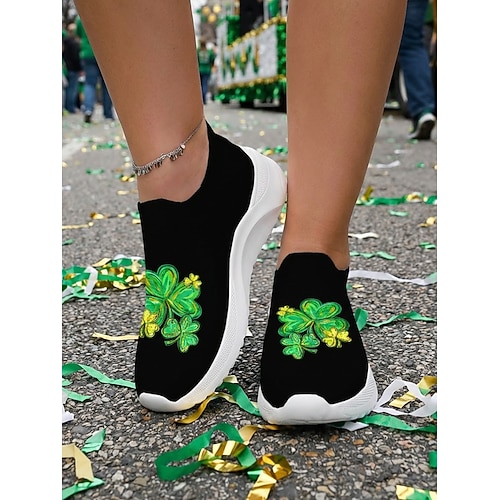 scarpe slip-on da donna con grafica a trifoglio per il giorno di San Patrizio: sneakers leggere in maglia per eventi di festival, feste al pub, sfilate di strada abbigliamento casual per esterni