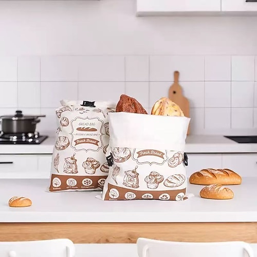 Confezione da 2 sacchetti per il pane in cotone con chiusura a scatto in TPU, sacchetto riutilizzabile per imballaggio di prodotti da forno, contenitore ecologico in tessuto per il pane, contenitore