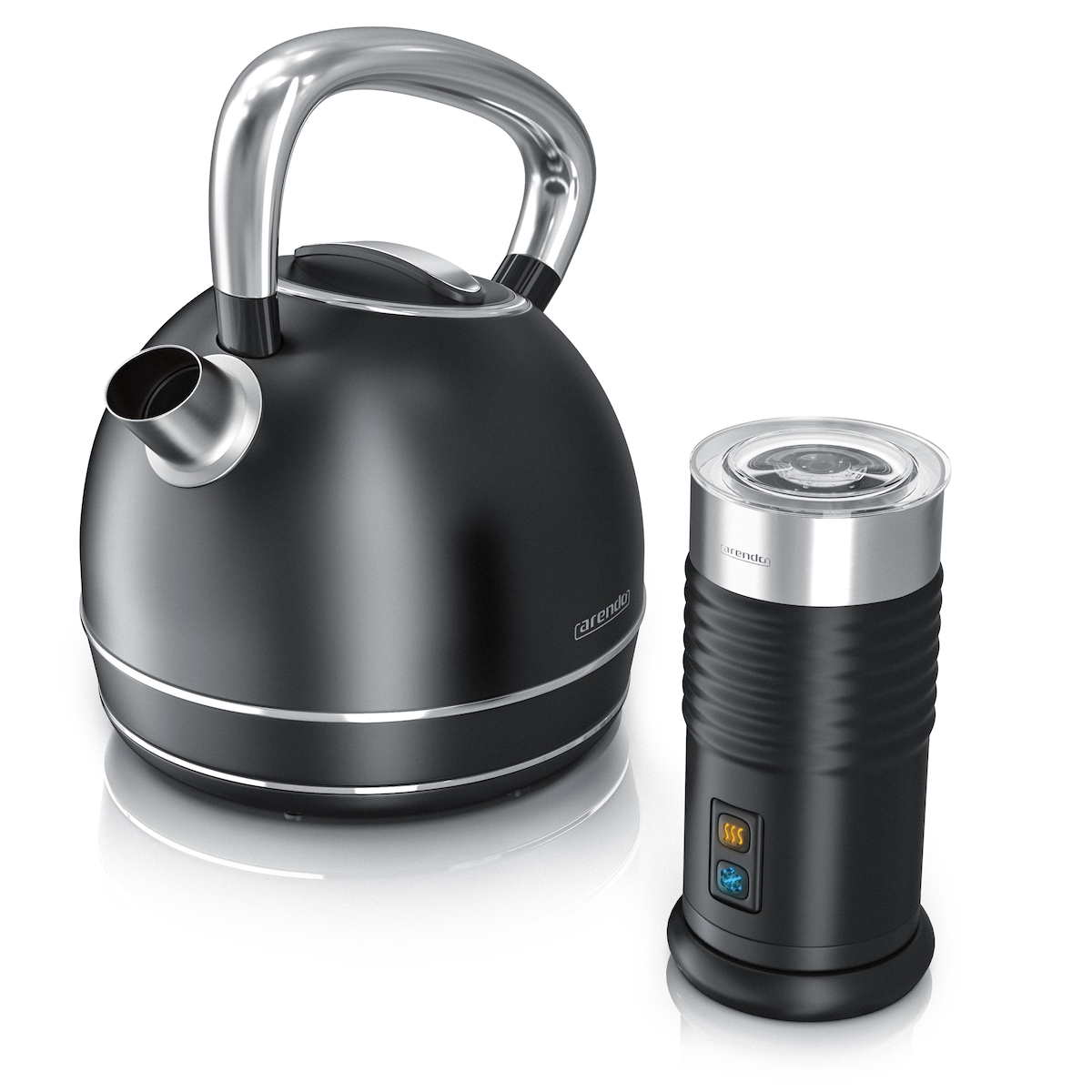 Arendo Frühstücks Set in Matt Schwarz - Edelstahl Wasserkocher & Milchaufschäumer