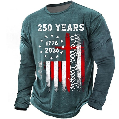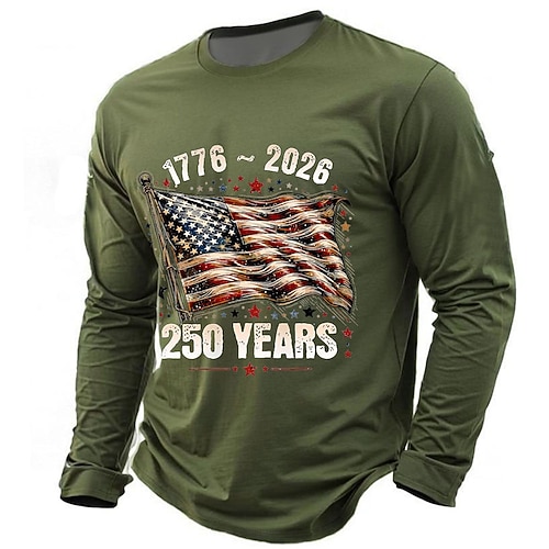 250° anniversario dell'America Per uomo 250° anniversario degli Stati Uniti Maglietta Manica Lunga maglietta Stampa 3D Girocollo Camicia Quotidiano Casual Quotidiano Viaggio Feste Blu Nero Verde
