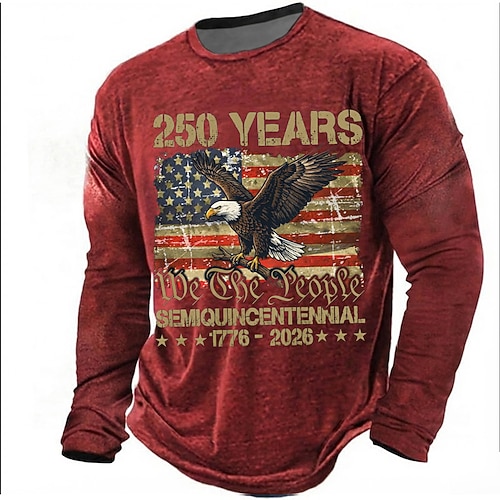 250° anniversario dell'America Per uomo 250° anniversario degli Stati Uniti Maglietta Manica Lunga maglietta Stampa 3D Girocollo Camicia Quotidiano Casual Quotidiano Viaggio Feste Blu Nero Rosso