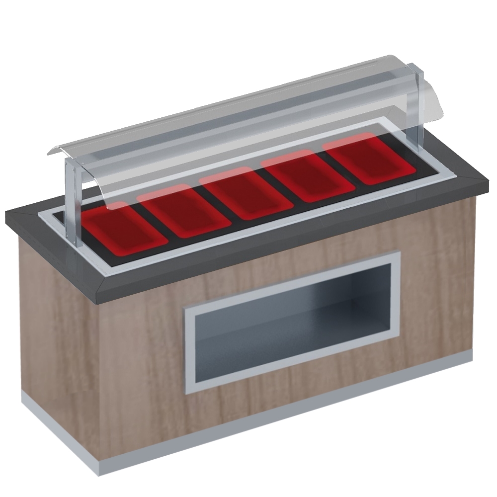 Warmes buffet mit glaskeramik und bildschirmschutz 5 gn 1/1-20 fertig nm - 2000x850x1320 mm - 3210 W 230/1V - 11058NM1 Eurast