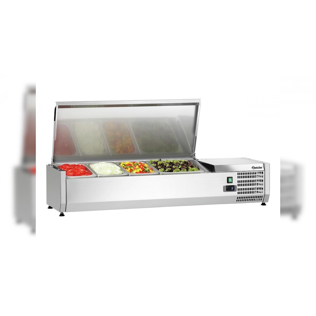 Bartscher Positives gekühltes Edelstahldisplay 3 x GN 1/3 & 1 x GN 1/2, 166 W, 220 V - MONO