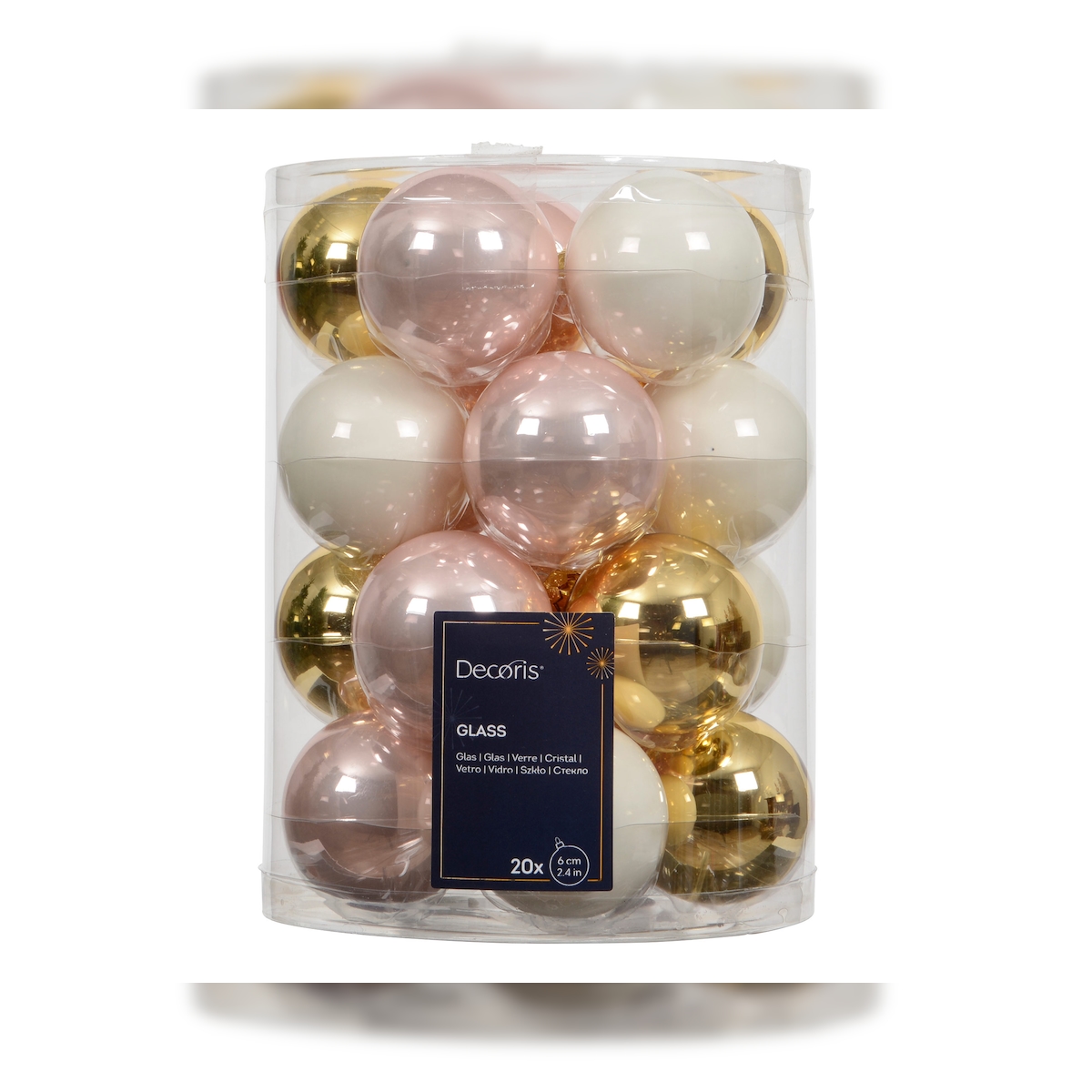 20 Weihnachtskugeln Glas 6cm glänzend Christbaumkugeln Weihnachtsbaumkugeln Christbaumschmuck Weihnachtsbaumschmuck Weihnachten Rosa Gold Mix