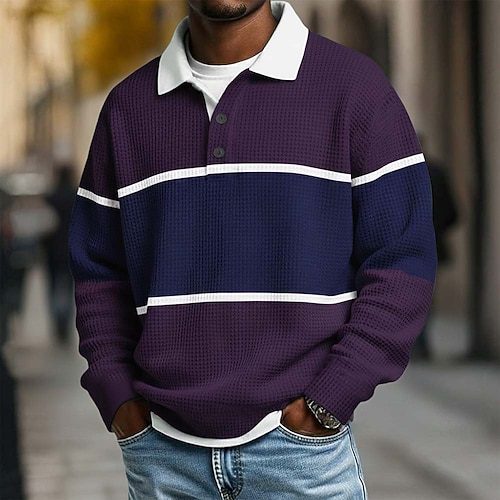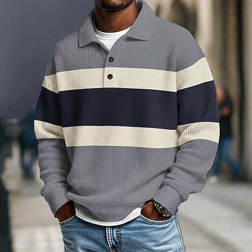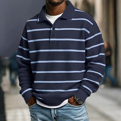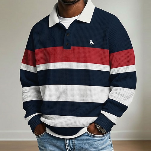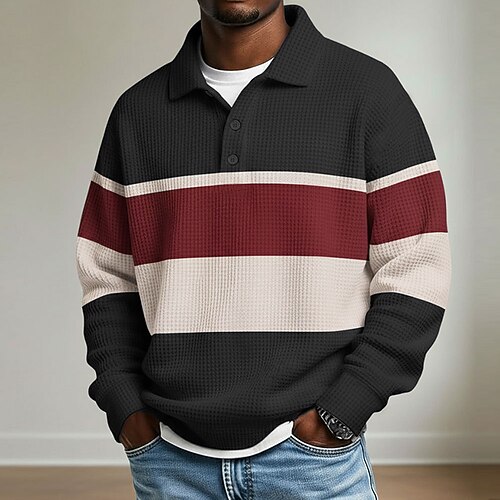 Per uomo Strisce orizzontali Magliette Polo a Nido d'Ape Polo da rugby Testurizzato Manica Lunga Magliette polo Bavero Abbigliamento Sportivo Casual Scuola Athleisure Abbigliamento quotidiano Stampa