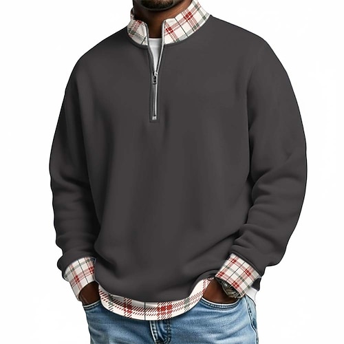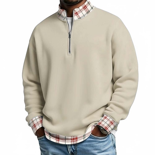 Per uomo Plaid Magliette Polo a Nido d'Ape Polo con zip Manica Lunga Magliette polo Colletto alla coreana Casual Scuola Athleisure Ferie Abbigliamento quotidiano Stampa 3D Polo con cerniera a un