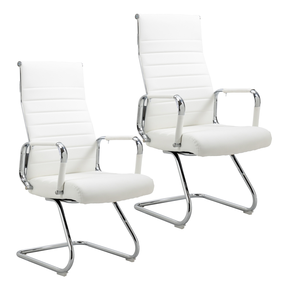 SVITA OFFICE COMFORT 2x Besucherstuhl Kunstleder Freischwinger mit Armlehne Weiß