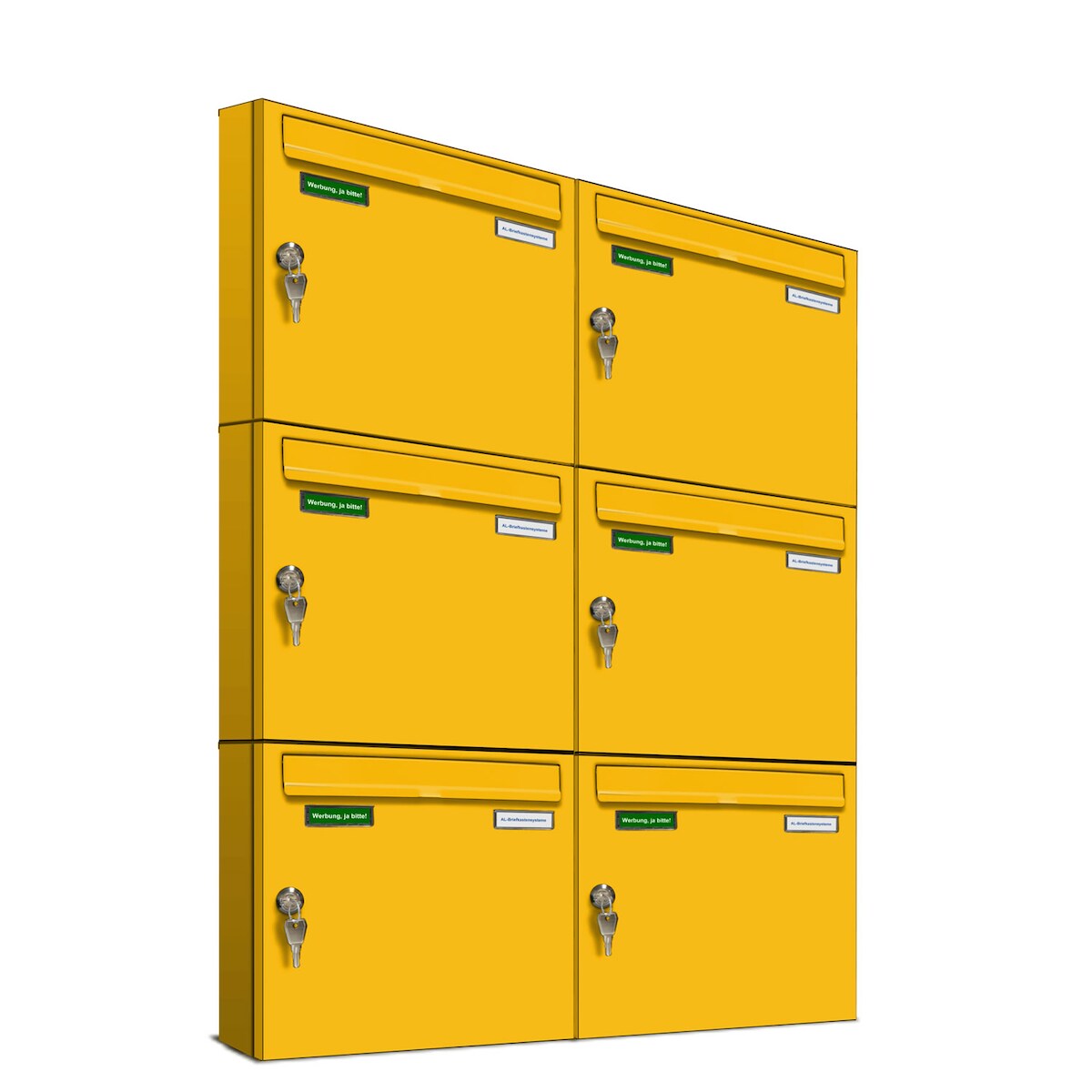 AL Briefkastensysteme 6 x Basic Wand Briefkasten in RAL Farbe Signal Gelb für Post A4, wetterfest, Artikelnummer: 431P6EA3P1003