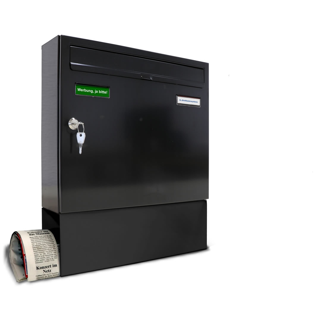 AL Briefkastensysteme 1 x Basic Wand Briefkasten in RAL Farbe 9005 Tief Schwarz für Post A4, wetterfest, Artikelnummer: 431P1EA1ZFP9005