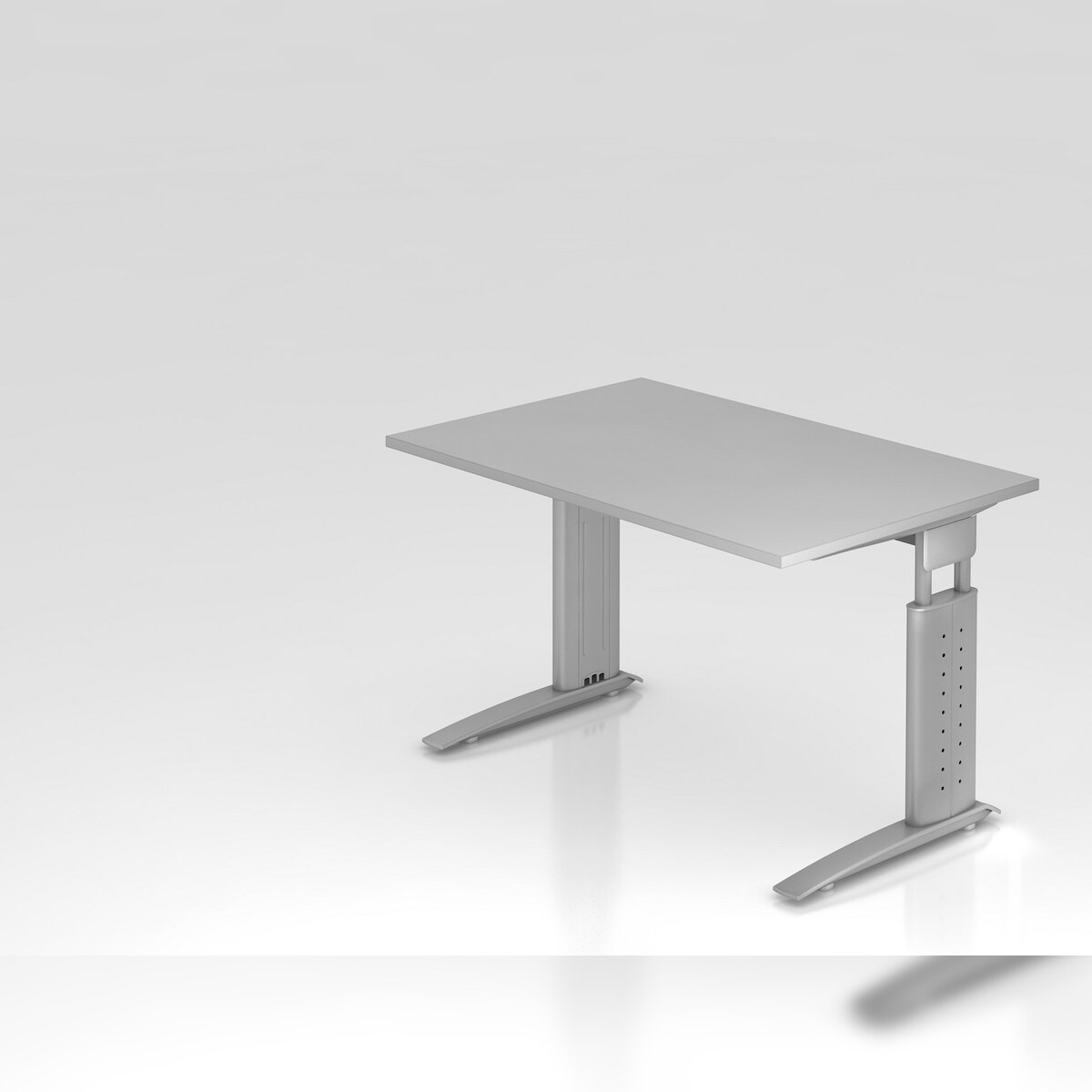 PROREGAL Schreibtisch Mauri | Grau | Silber Gestell | BxT 120x80cm | Arbeitshöhe 68-86cm | höhenjustierbar, 2cm Raster | C-Fuß-Gestell | Bürotisch