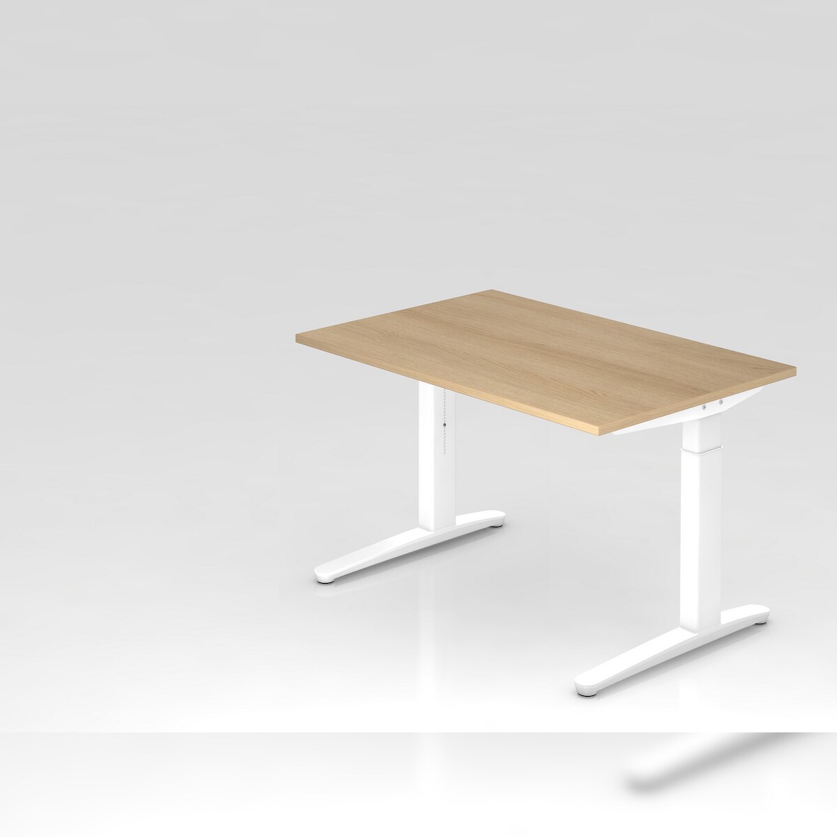 PROREGAL Schreibtisch Mika | Eiche | Weißes Gestell | BxT 120x80cm | Arbeitshöhe 65-85cm | höhenjustierbar, 1cm Raster | C-Fuß-Gestell | Bürotisch