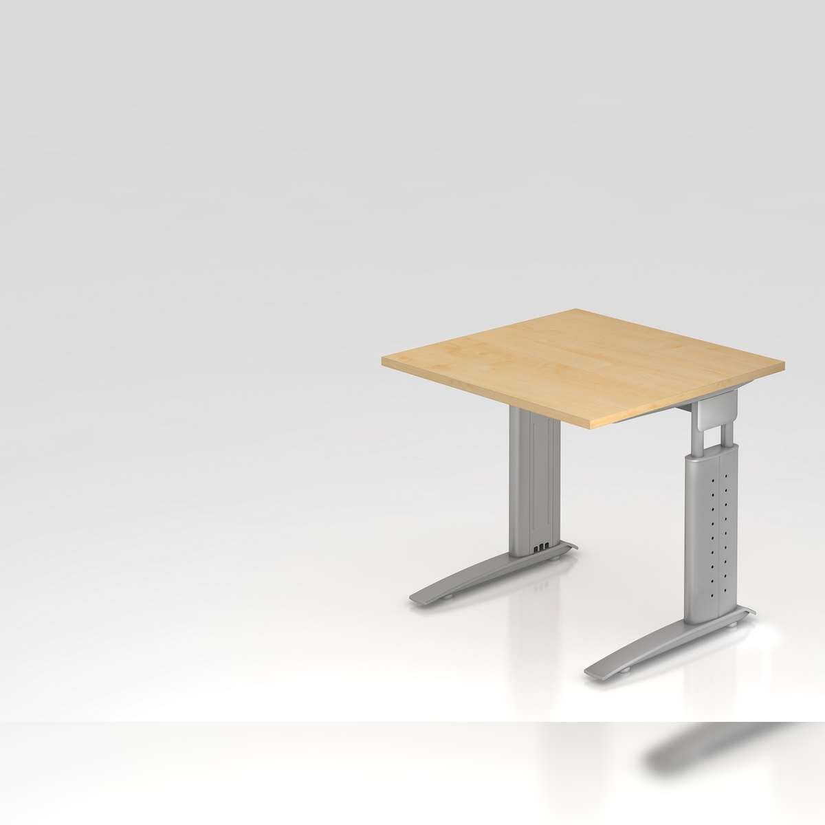 PROREGAL Schreibtisch Mauri | Ahorn | Silber Gestell | BxT 80x80cm | Arbeitshöhe 68-86cm | höhenjustierbar, 2cm Raster | C-Fuß-Gestell | Bürotisch