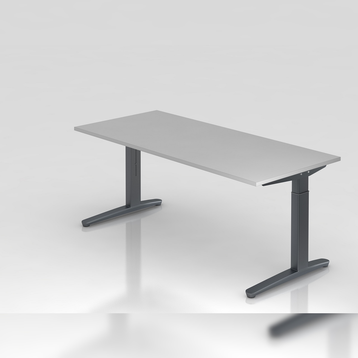 PROREGAL Schreibtisch Mika | Grau | Graues Gestell | BxT 180x80cm | Arbeitshöhe 65-85cm | höhenjustierbar, 1cm Raster | C-Fuß-Gestell | Bürotisch