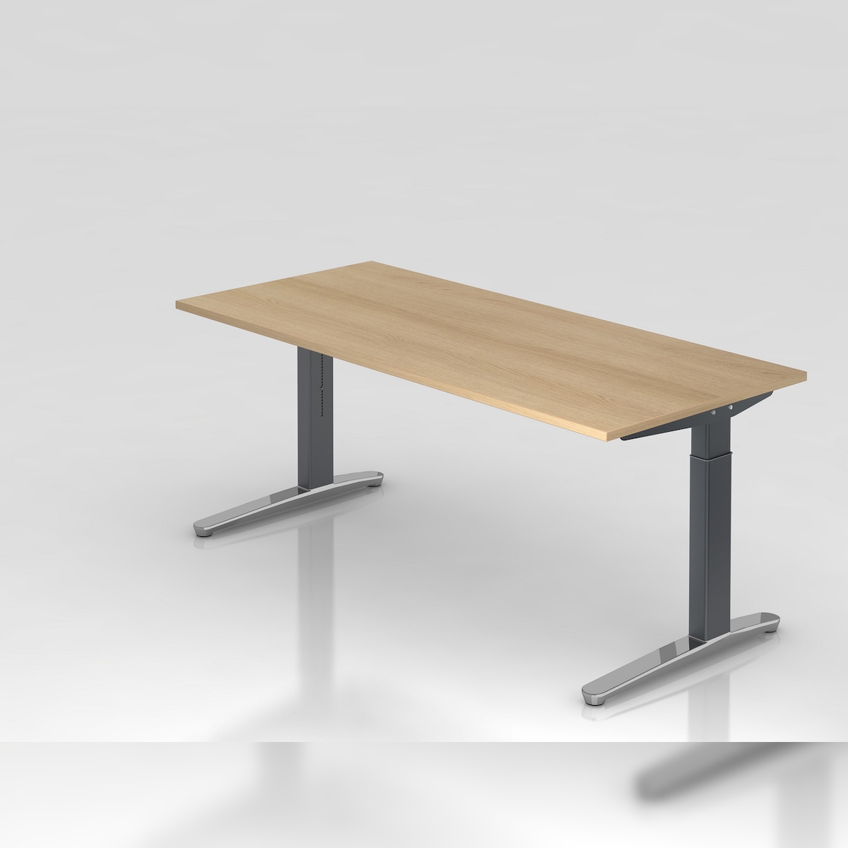 PROREGAL Schreibtisch Mika | Eiche | Graues Gestell poliert | BxT 180x80cm | Arbeitshöhe 65-85cm | höhenjustierbar, 1cm Raster | C-Fuß-Gestell