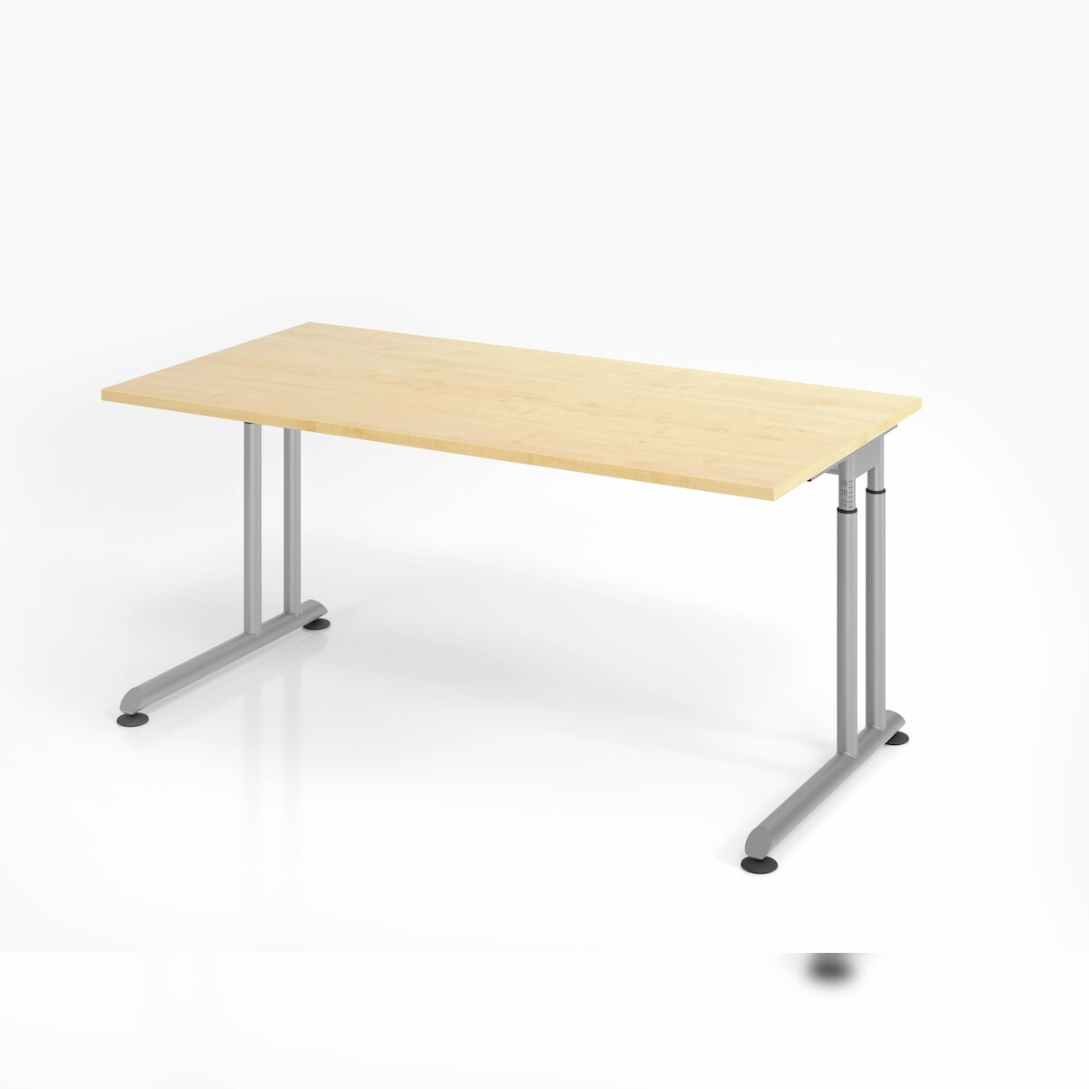 PROREGAL Schreibtisch Nilo | Ahorn | Silber Gestell | BxT 160x80cm | Arbeitshöhe 68-82cm | höhenjustierbar, 1cm Raster | C-Fuß-Gestell | Bürotisch