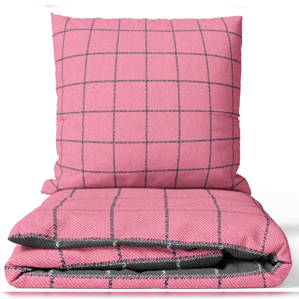 Leonado Vicenti Baumwolle Bettwäsche 200x200 cm Rosa Grau kariert Wendeseite Reißverschluss 3 tlg