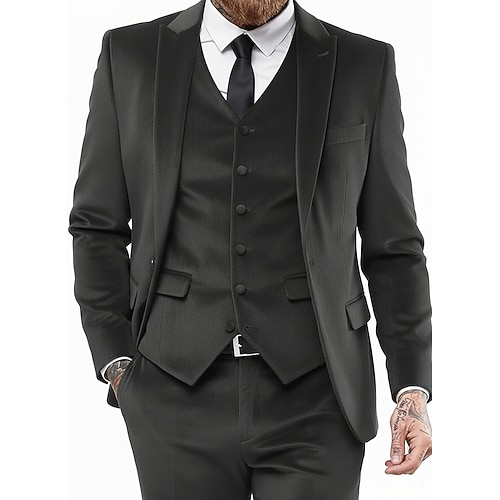 Abiti da uomo autunnali per matrimoni, revers a lancia, neri, bordeaux, classici, formali, tinta unita, vestibilità su misura, 3 pezzi, monopetto, due bottoni