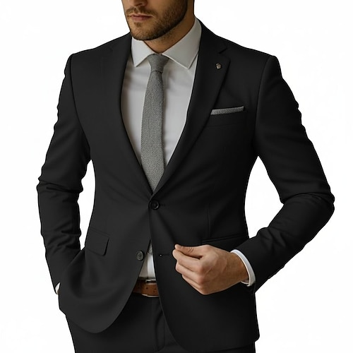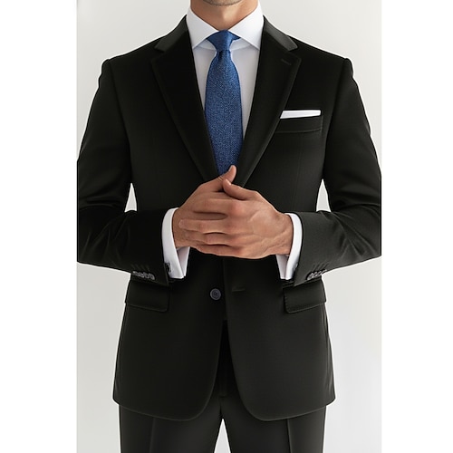 Abiti casual da uomo, semi-formali, in velluto, con revers a lancia, neri, bordeaux, per tutti i giorni, tinta unita, vestibilità su misura, 2 pezzi, monopetto, due bottoni