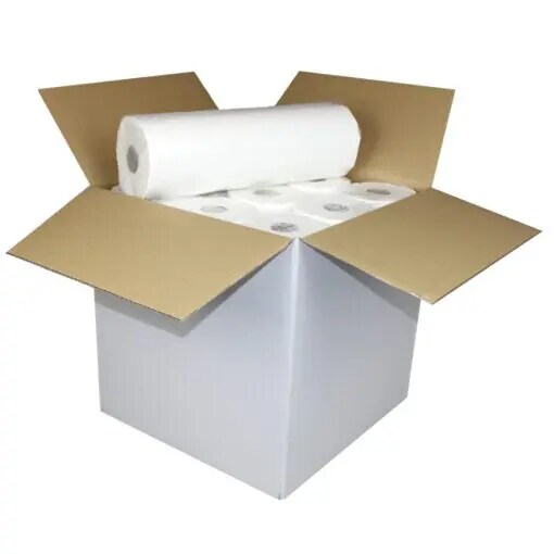 Ärzterollen/Ärztekrepp, hochweiß, 100 % Zellstoff, 2-lagig, perforiert, geprägt, 39x37 cm, 135 Abrisse, 50 m, 9 Rollen