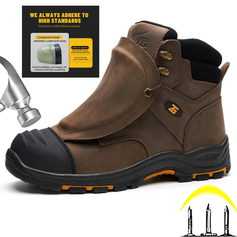 Leder-Arbeitsstiefel, Sicherheitsschuhe mit Stahlkappe, Herren, Arbeitsschuhe, wasserdichte Sicherheitsschuhe, pannensichere Industrie-Sicherheitsschu