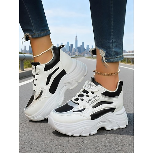 Per donna Scarpe da ginnastica Taglie forti Con rialzo interno Sneakers con plateau Esterno Giornaliero Color Block Estate Plateau Zeppa Punta tonda Di tendenza Per sport Informale Footing Similpelle