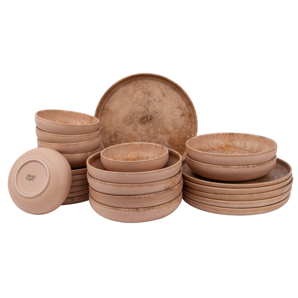 Teller-Set MY HOME "modernes Geschirr-Set, Service Nydala", beige (schwarz, beige), 18 Stk., Steinzeug, Geschirr-Sets, Teller-Set, hohe Haltbarkeit, spülmaschinen- & mikrowellengeeignet, Reaktivglasur