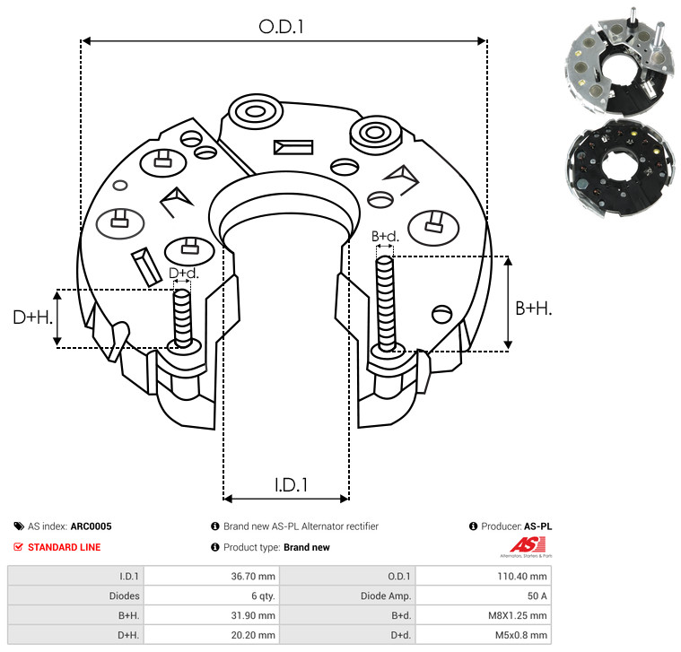 AS-PL Gleichrichter, Generator Universal 110,40mm für VW FIAT MAN 81261090014 068903539B 068903539C ARC0005