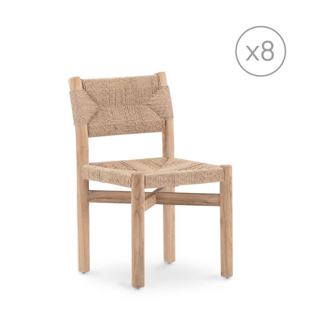 Set di 6 sedie con braccioli in legno di teak e rattan