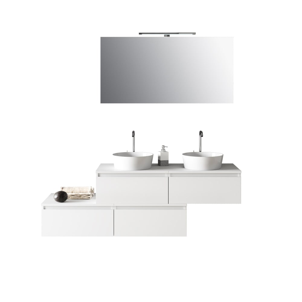 Meuble de salle de bain 8 pièces double vasque en mélamine blanche