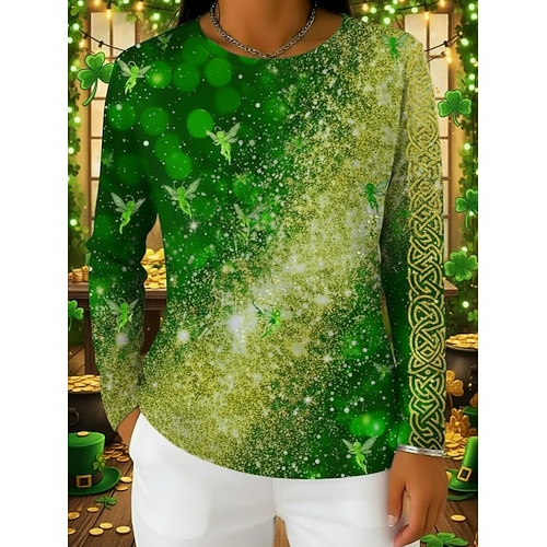 Festa di San Patrizio Per donna Maglietta Trifoglio Moda Classico Casual Manica Lunga Girocollo Top Regolari Quotidiano Weekend Abbigliamento da vacanza Stampato Verde chiaro Verde scuro Verde Estate