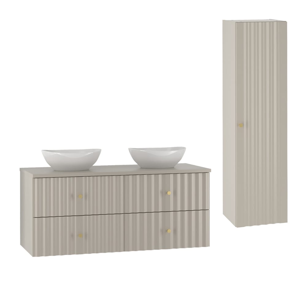 Set di mobili da bagno doppio lavabo effetto legno cachemire 140cm