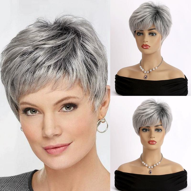 Short Pixie Cut Wigs for Women Synthetic Layered Highlight Wigs with Bangs Natural Hair Replacement Wig