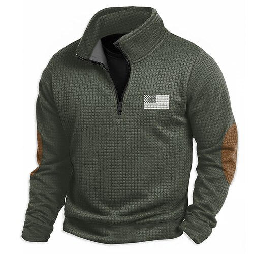 Felpa Waffle della Bandiera Americana per Uomini del 250° Anniversario dell'America Fashion Casual Vintage Retro Collo Alto per Esterno Regalo per Casa Nera Marrone Verde Militare Grigia Zip Autunno