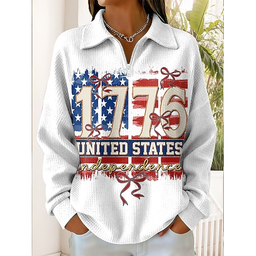 Felpa con Cappuccio Americana 250° per Donne Grafica Casual Stampa Manica Lunga Mezzo Zip Top Regolari Casual Giornaliera Sportiva Nera Bianca Primavera Inverno