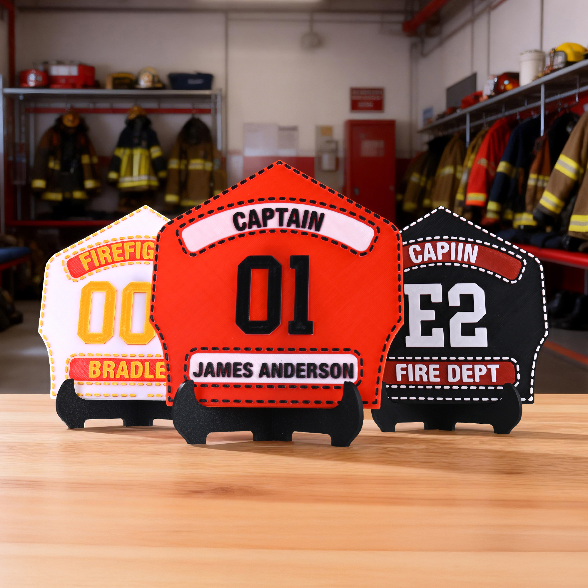 Ornement de badge de pompier multicolore imprimé en 3D avec nom et service Décoration de bureau Cadeau d'anniversaire pour les pompiers
