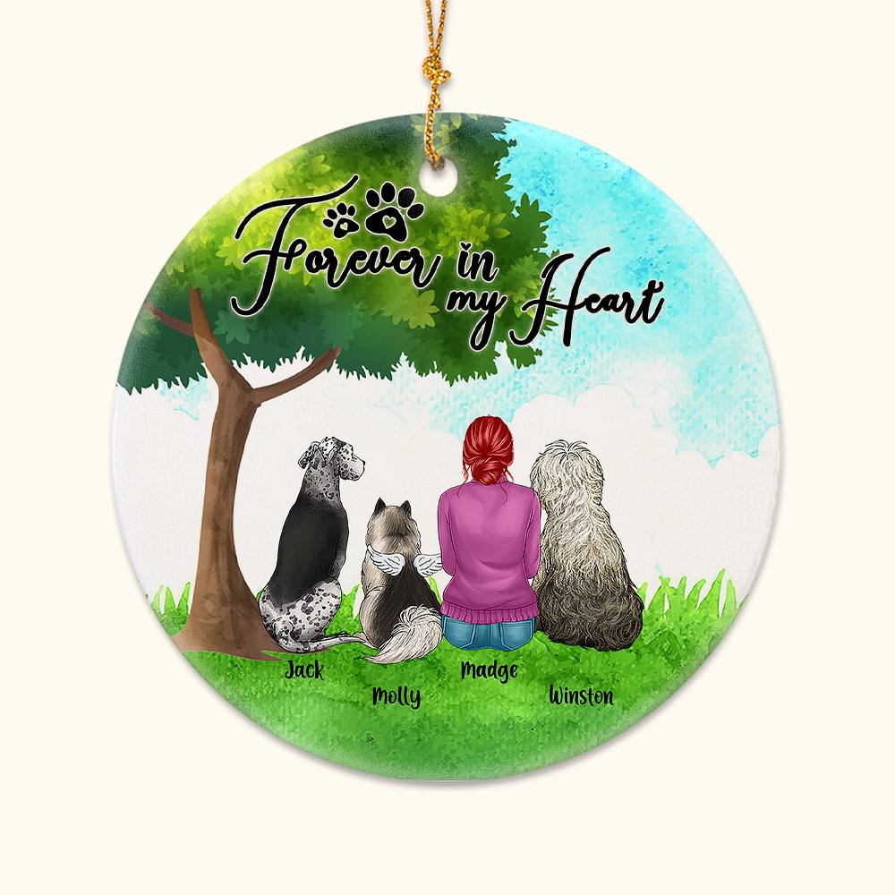 Personalizzato Forever in My Heart Ornamento rotondo in ceramica con sfondo verde Regalo di Natale e compleanno per chi ama i cani