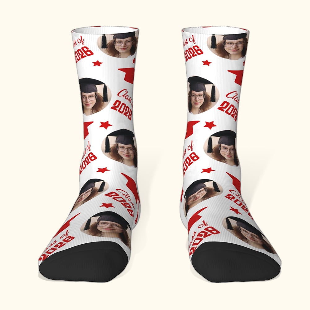 Chaussettes hautes personnalisées multicolores avec photo Cadeau de fin d'études pour un ami ou un camarade de classe