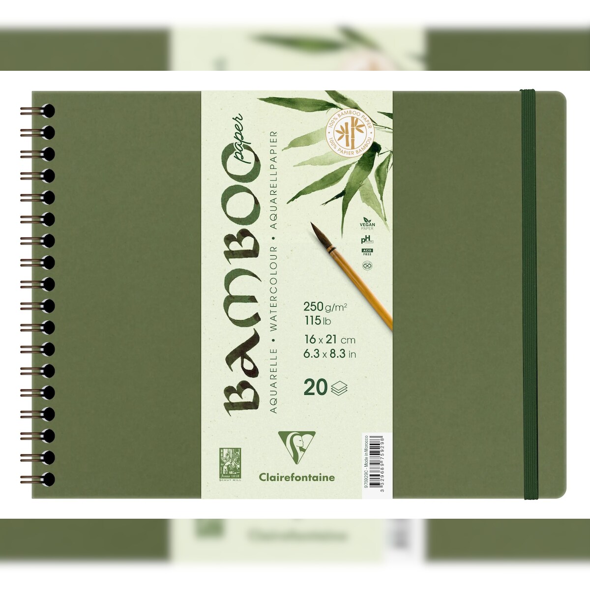 Clairefontaine 2x Bamboo, spiralgebundes Skizzenbuch mit 20 Blatt Bambuspapier, 21x16 cm, 250g - 975929C
