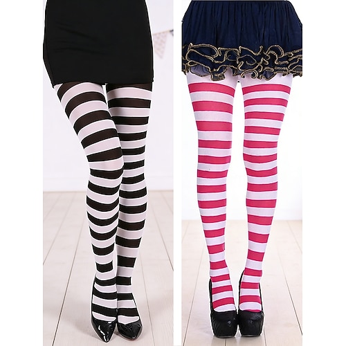 set di collant a righe da donna per feste di carnevale (2 paia), elastici sopra il ginocchio, blu disegno a strisce orizzontali verdi, divertenti calzini in costume per adulti, festival, carnevale,
