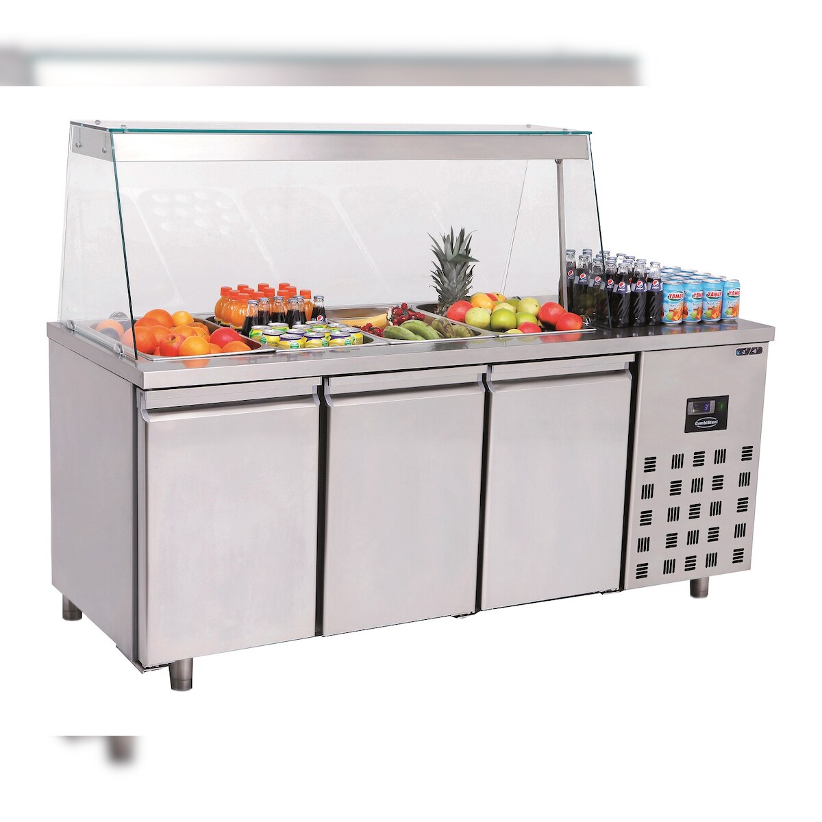 Chefgastro Saladette 3 Türen 4X 1/1GN Behälter BxTxH 1865x700x850mm