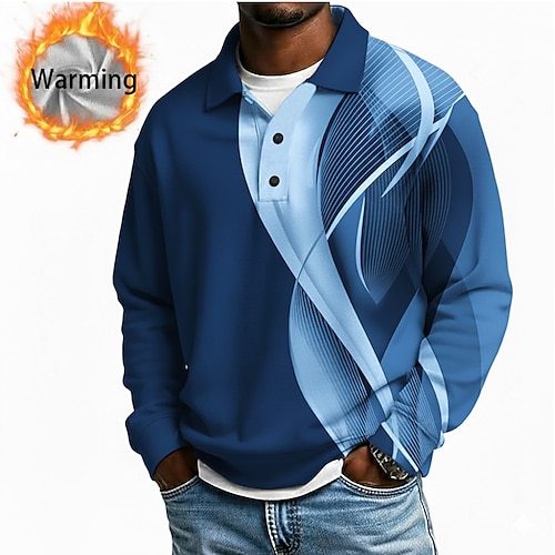Per uomo Geometrico Linea Polo Camicie termiche Manica Lunga Magliette polo Bavero Casual Athleisure Ferie Abbigliamento quotidiano Stampa 3D Primavera Autunno Inverno Blu Nero Rosso