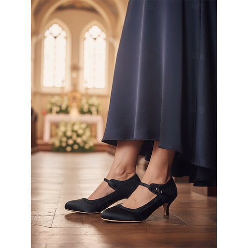 Scarpe da sposa eleganti con tacco basso e punta tonda in pizzo color avorio, modello mary jane da donna con fibbia, per matrimoni al chiuso, ricevimenti formali e spose romantiche