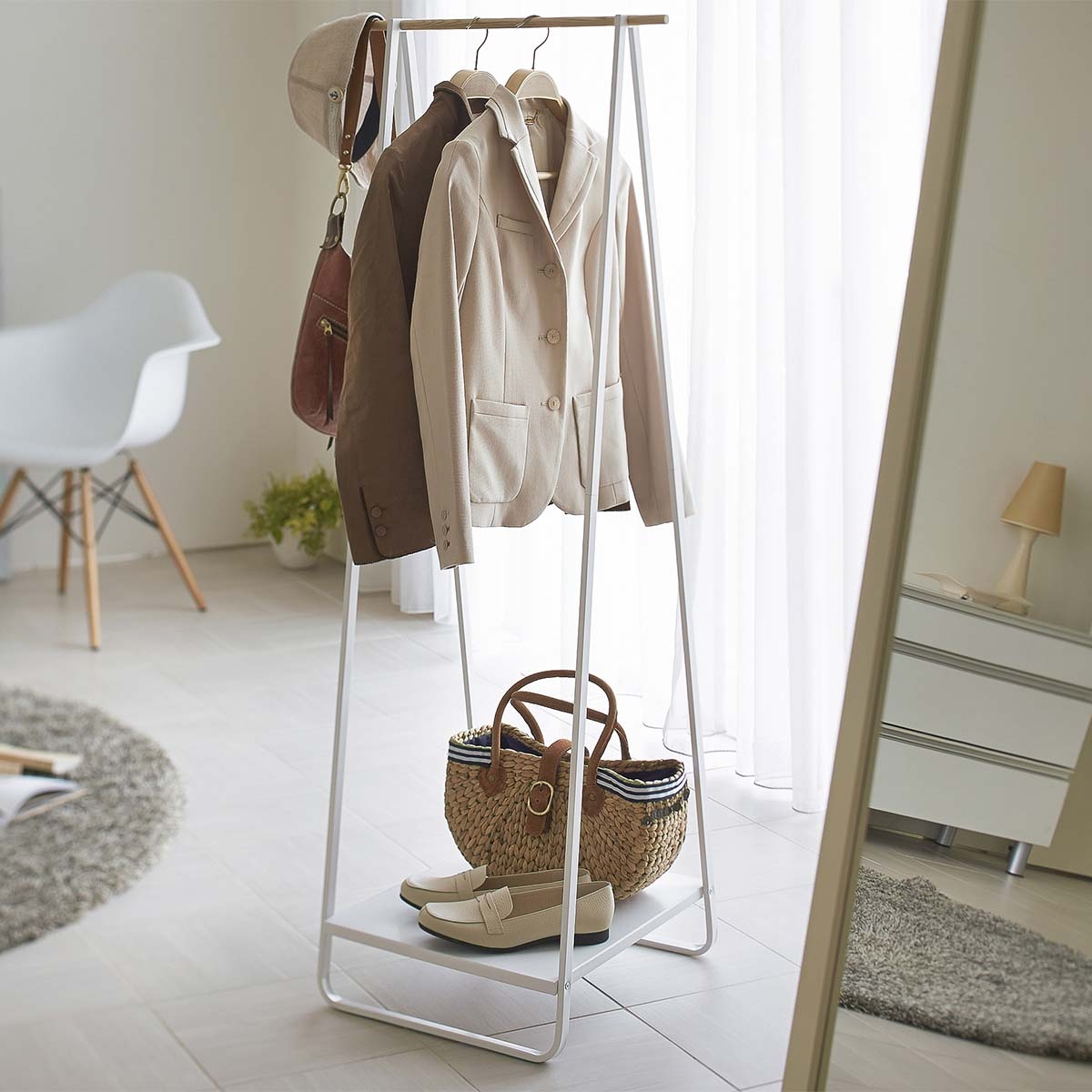 Yamazaki Garderobenständer Metall Kleiderständer freistehend mobil mit Ablage weiß 02297